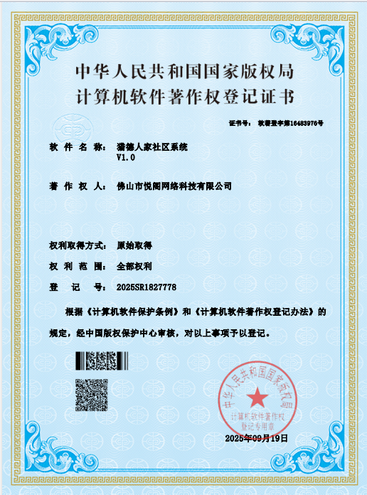 猎德人家社区系统 企业职能问答系统 会员在线缴费系统专利证书